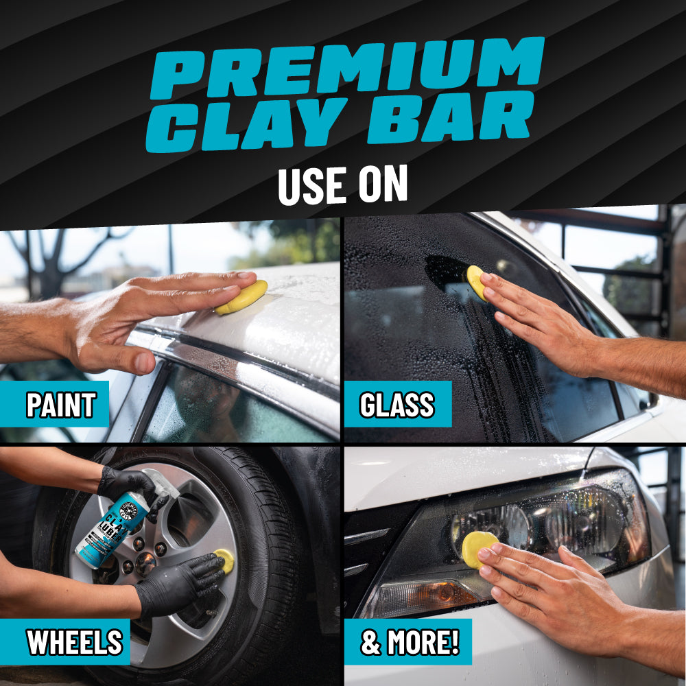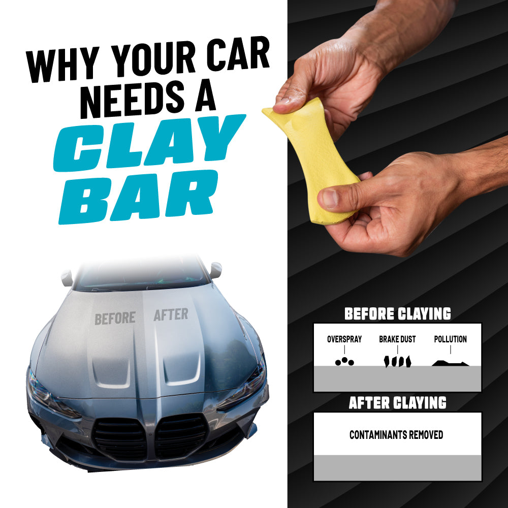 Easily remove stubborn embedded contaminants and pollutants that leave your paint. glass. wheels. and more looking dull and feeling rough. The Complete Clay Kit includes everything you need to restore your ride’s surfaces to a stunning. smooth as glass. mirror-like shine.
