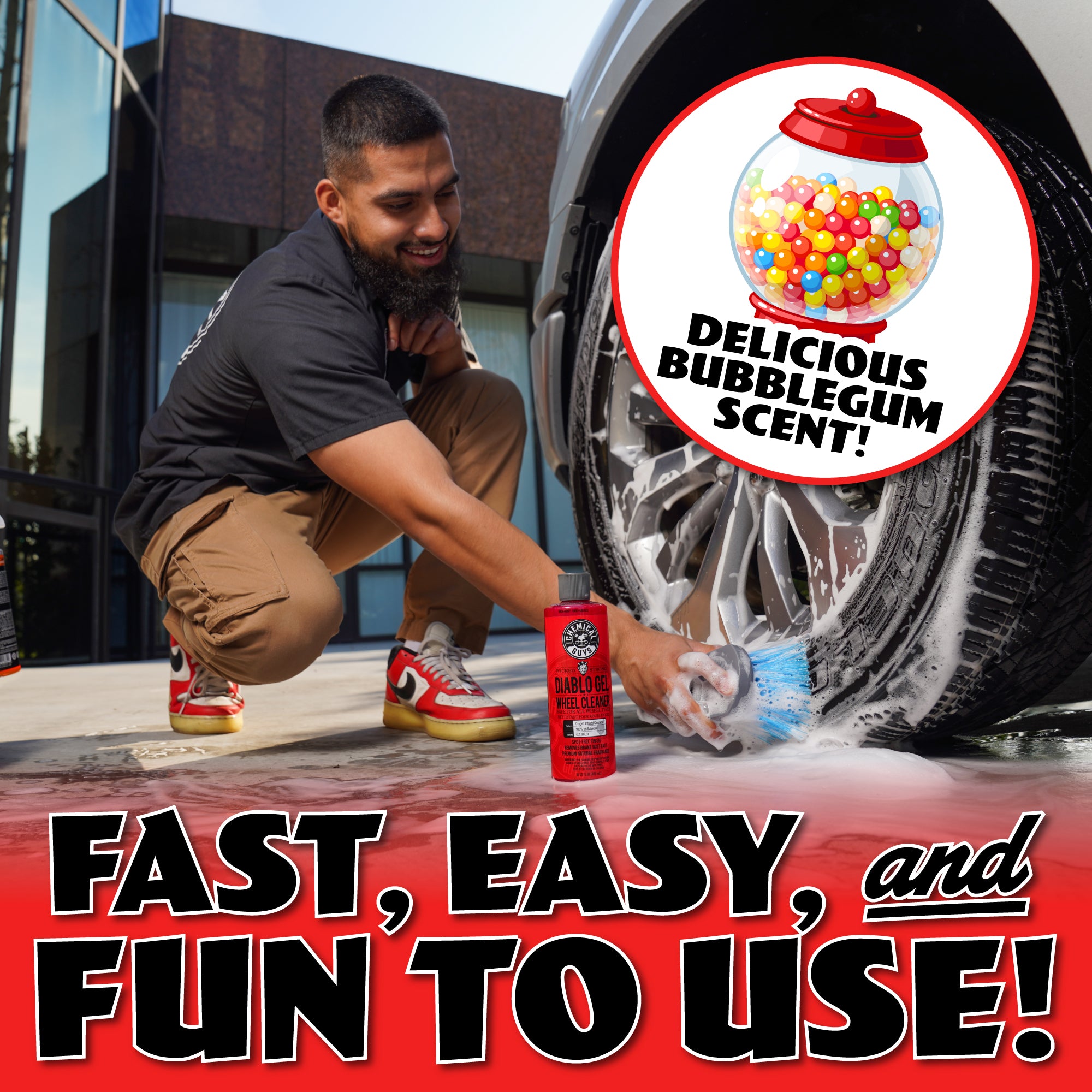 Revolutionize your car cleaning routine with Diablo Wheel Cleaner. the pH-balanced marvel engineered to perfection. Unlike traditional cleaners that can corrode and damage your wheels over time. Diablo’s non-caustic formula ensures that your prized possessions retain their showroom shine. ride after exhilarating ride.