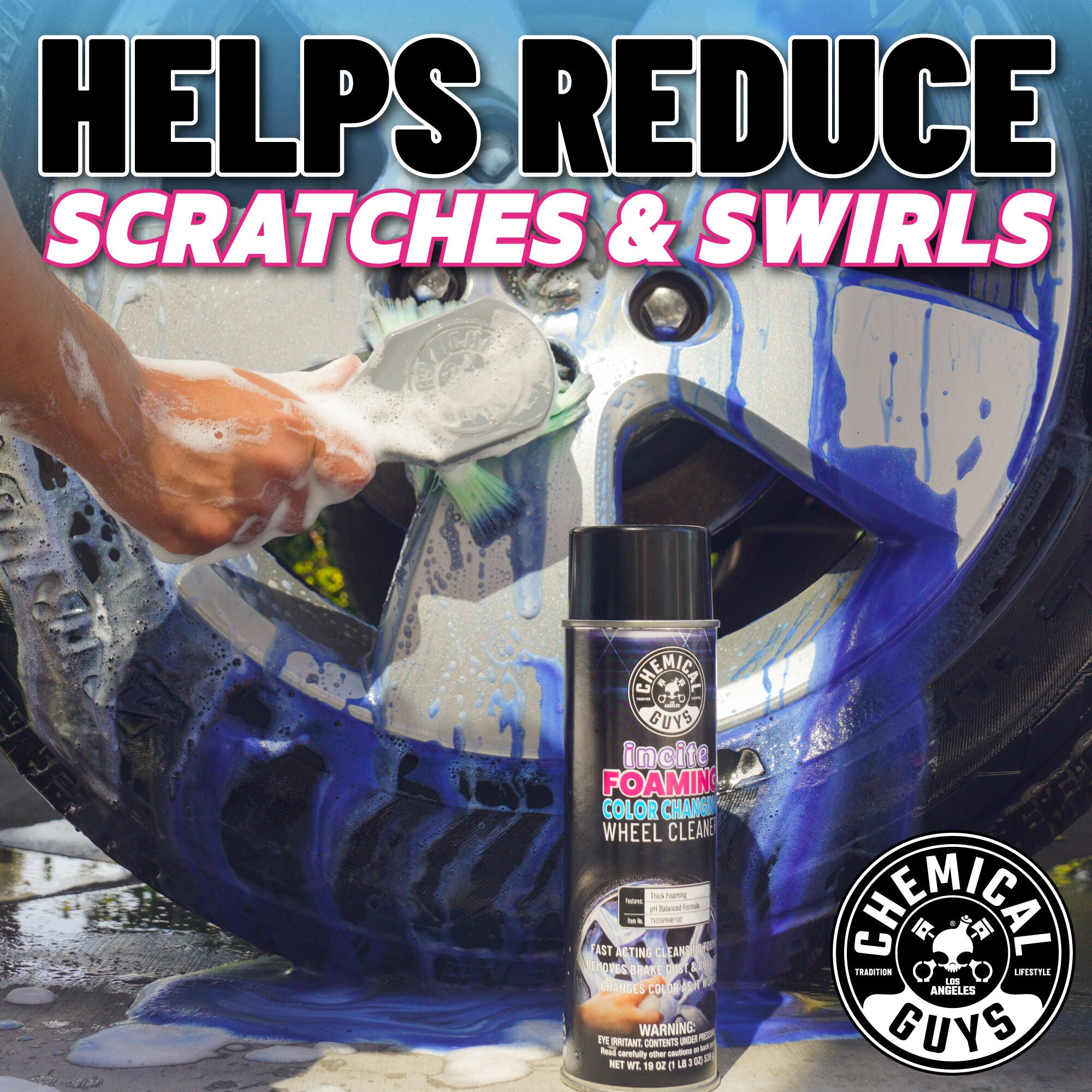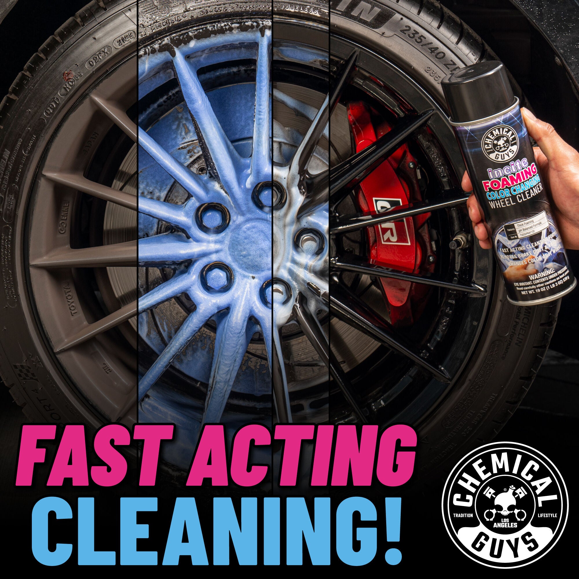 Incite Foaming Wheel Cleaner is a color-changing foam that makes for effortless restoration and maintenance of your wheels. Just spray it on and watch as it magically removes dirt. grime. and brake dust.