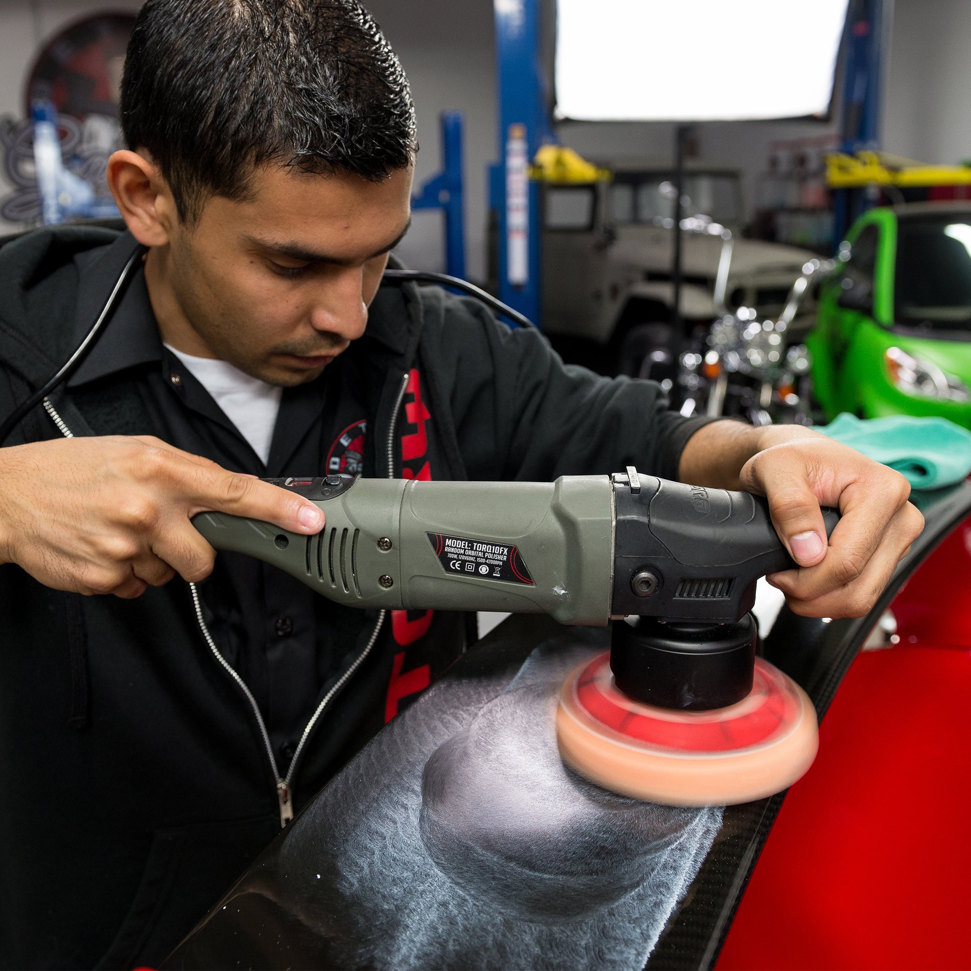 The Orange Quantum Pad is a medium-cutting pad that removes light to moderate defects like swirls. scratches. oxidation. and water spots to restore gloss. depth. and reflection to painted surfaces.