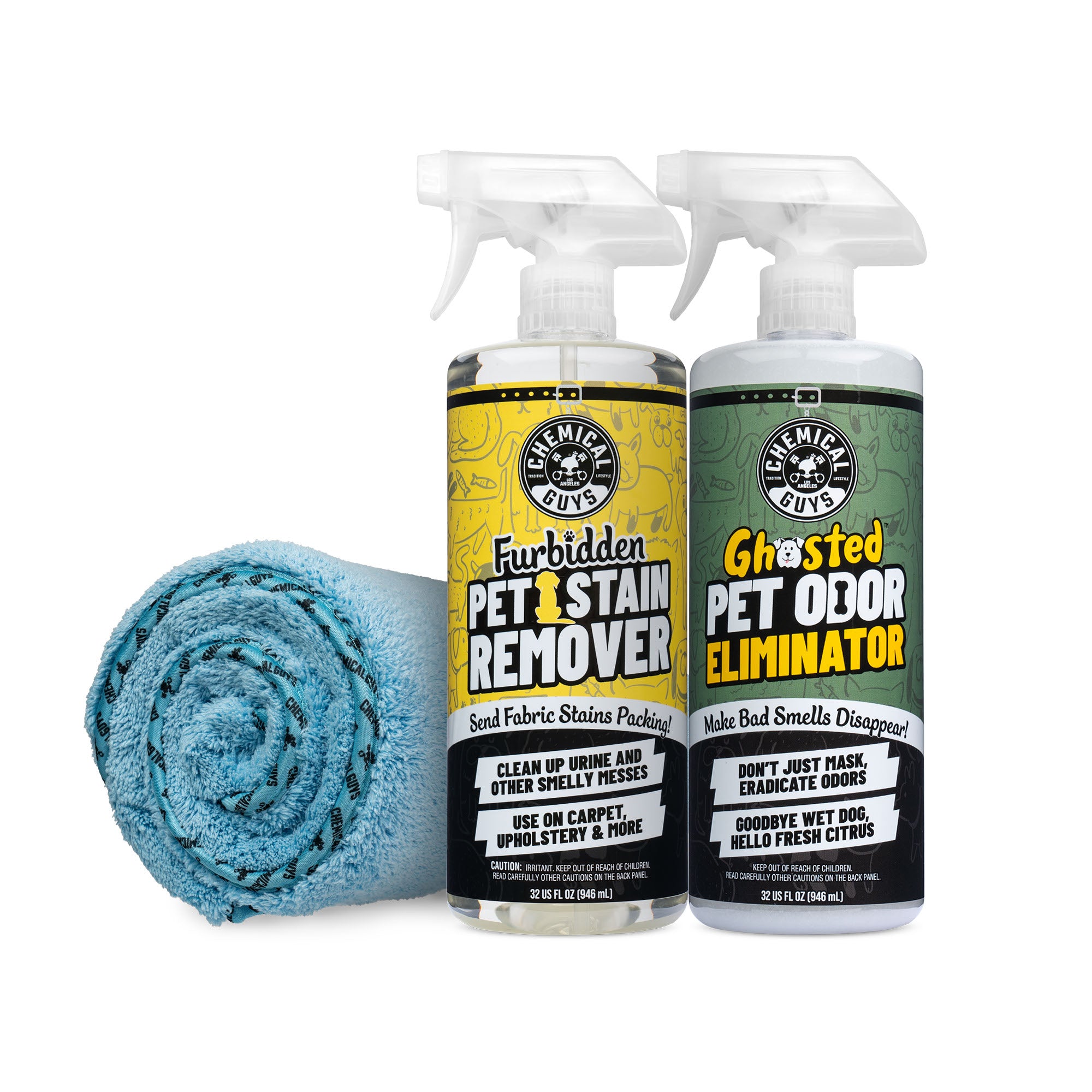Clean up stubborn pet stains. banish nasty pet odors right at their source. and get your four-legged friend dry as a bone in no time with this set of three premium pet products.