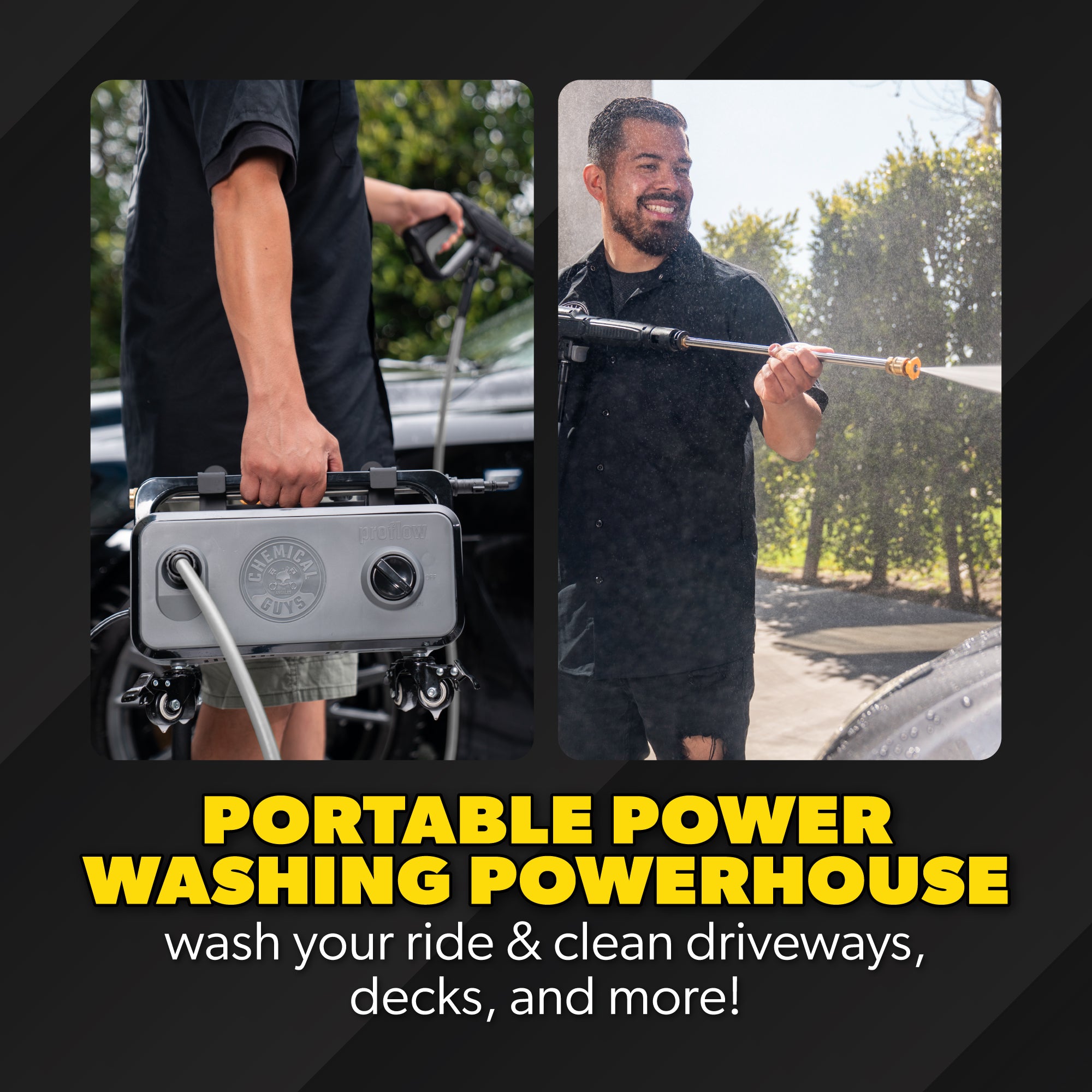 Get pro-level results at home with this premium pressure washer kit. The compact ProFlow PM2000 Pro pressure washer powers through dirt with the TORQ Snubby gun. Big Mouth Max Release Foam Cannon. and Mr. Pink Foam Party. Dry your ride with After Wash and the ultra-absorbent Woolly Mammoth Drying Towel. your shortcut to a showroom-ready. glossy finish.?