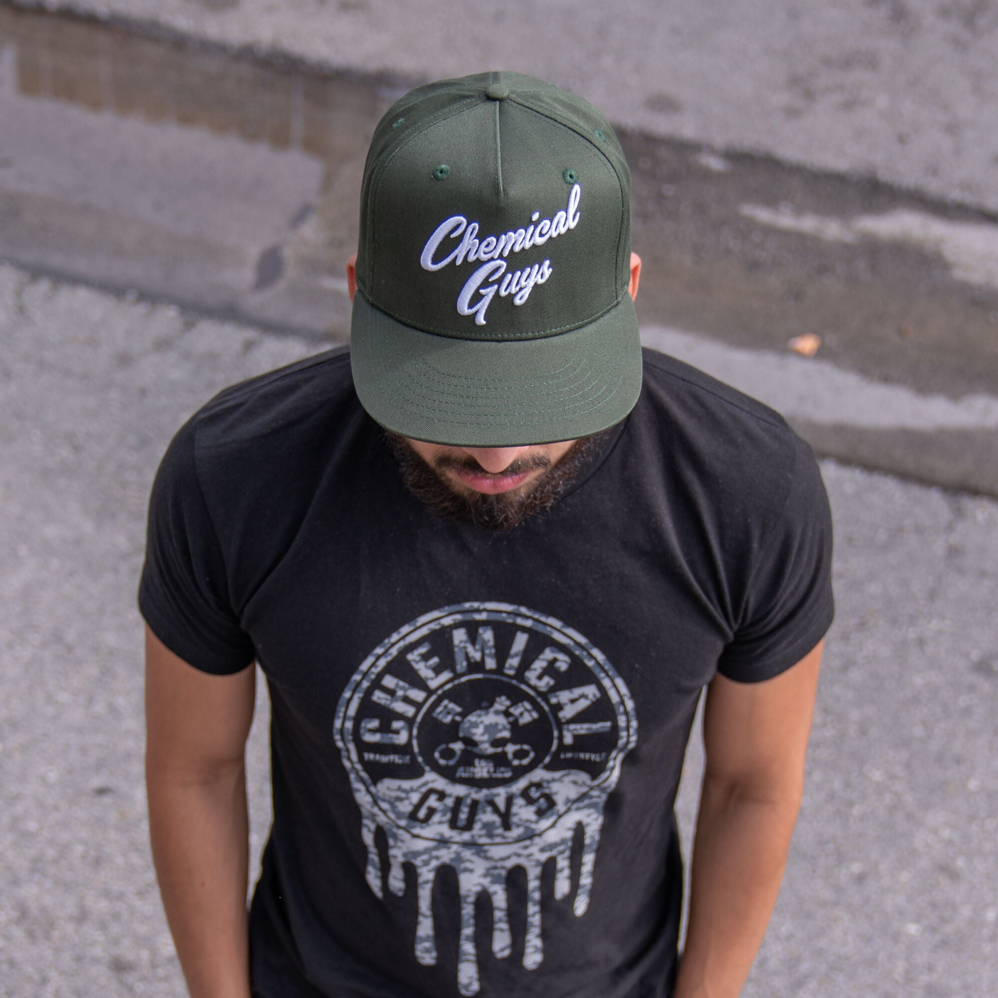 Upgrade your look with the fresh. new Snap-It-Back Olive Green Script Hat! Wear it frontwards or backwards to keep cool while detailing. and let the raised script lettering broadcast far & wide: you’re with Chemical Guys.