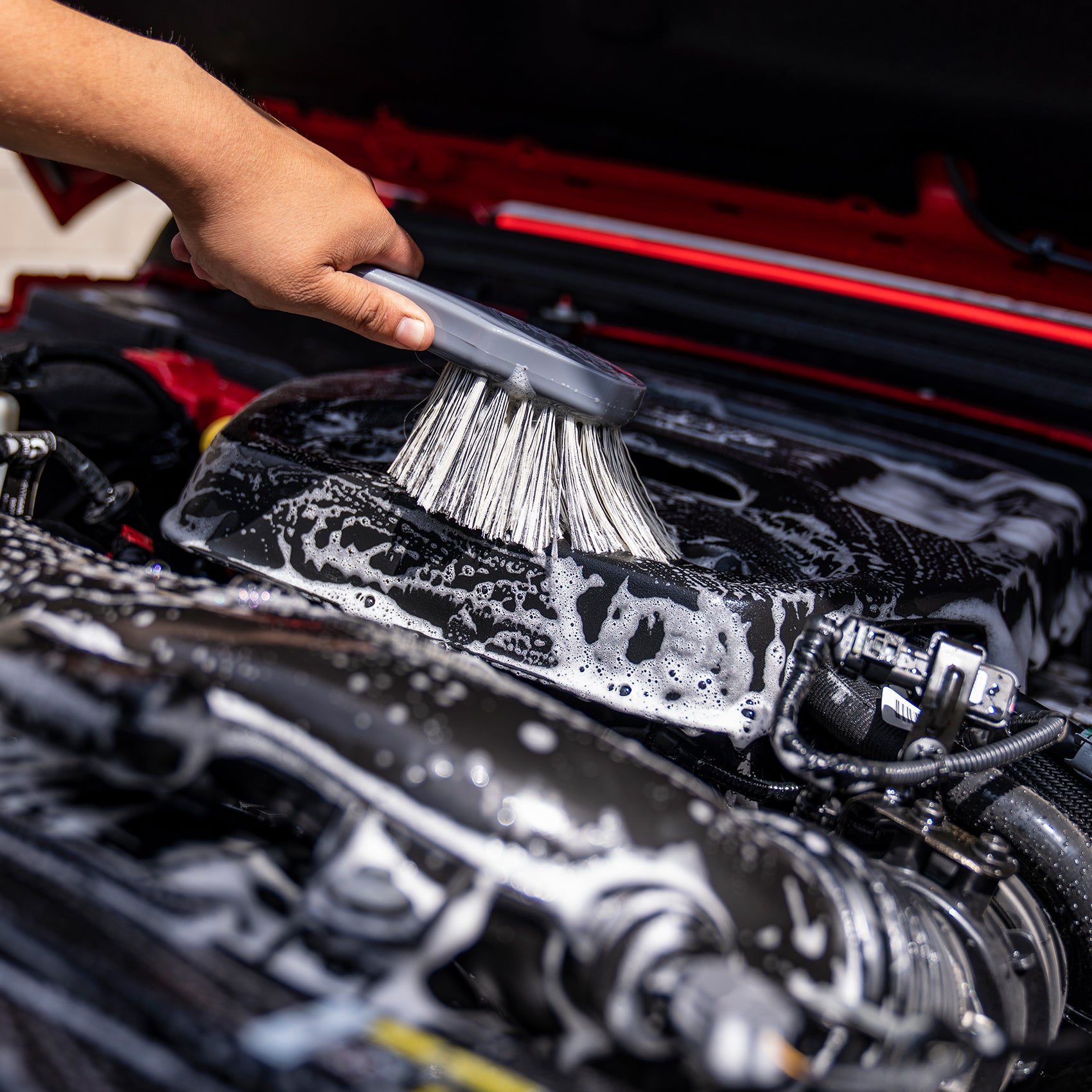 The Wheel Works Medium Duty Wheel & Body Brush is the gentle. flagged-tip brush that’s strong enough to eliminate dirt and grime yet soft enough for sensitive engine parts and wheel finishes. Perfect for cleaning engine bays. undercarriages. wheels. and more.